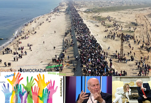 Una analisi acuta (come sempre profonda e originale) sui rivolgimenti in corso è quella fatta da Fausto Bertinotti e riportata per estratto sulla Unità dell’8.2.2025. Fausto Bertinotti è una delle voci più interessanti del vecchio PCI, quello di Gramsci e Terracini. Vediamo che dice. Bertinotti parla di crisi della democrazia politica, di capitalismo tecnico finanziario (Trump e Musk) come nuovo protagonista della scena politica internazionale. Per Bertinotti il primo quarto di secolo ha segnato l’inizio (a partire dai primi anni duemila) e la fine (con l’elezione di Trump alla Casa Bianca) di una economia neoliberista con la sostituzione di un sistema di cui non si vedono bene i contorni, ma è sempre orientato a difesa del capitale, destinato a fare dei ricchi (compreso Musk) sempre più ricchi, dei poveri sempre più poveri. Su Gaza (ma in una intervista televisiva) Bertinotti è stato lapidario. La “ricolonizzazione” di Gaza? Ma questa è deportazione. Queste le parole di Bertinotti. E la sola parola “deportazione” fa tornare alla mente altre deportazioni di massa che tutti speravamo fossero definitivamente condannate e invece ritornano nei discorsi di chi è a Capo degli USA, della potenza mondiale sempre additata come rappresentane autentica della democrazia. Rilievo quest’ultimo che apre la via a un altro quesito al quale cercherò di rispondere brevemente anche perché sull’argomento si sono accaniti centinaia se non migliaia di esperti. E’ in crisi la democrazia, è democratico Donald Trump? Sono due le domande. Parto dalla prima.